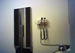 | Exam Room 1 All our examination rooms offer a wall mounted opthalmoscope, otoscope, and radiograph viewer in every room. |