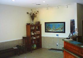 | On the rare occasion that our furry friends must wait to be seen, we have a spacious lobby to help keep make weighing even big animals easy. |